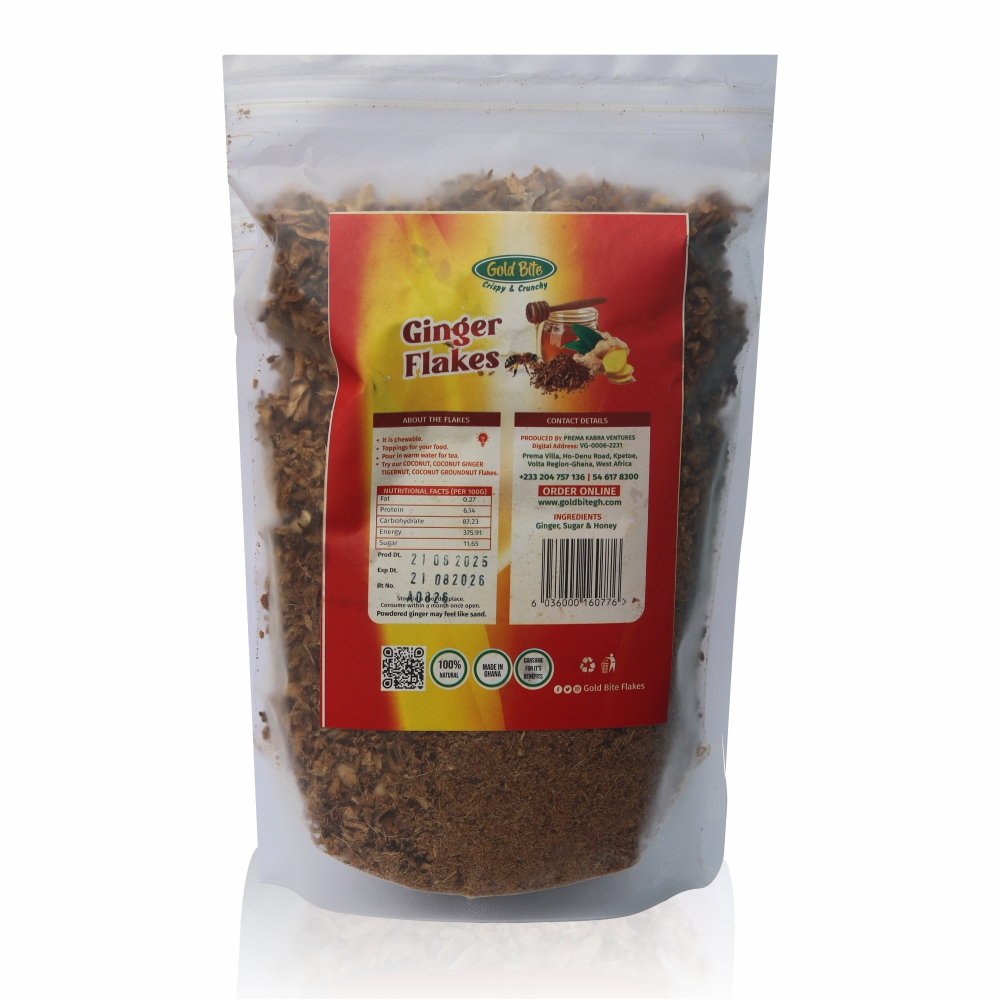 FDA approved Ginger Flakes are dried, crushed, crispy, and crunchy ginger pieces. They are not fried but baked with no added oil.