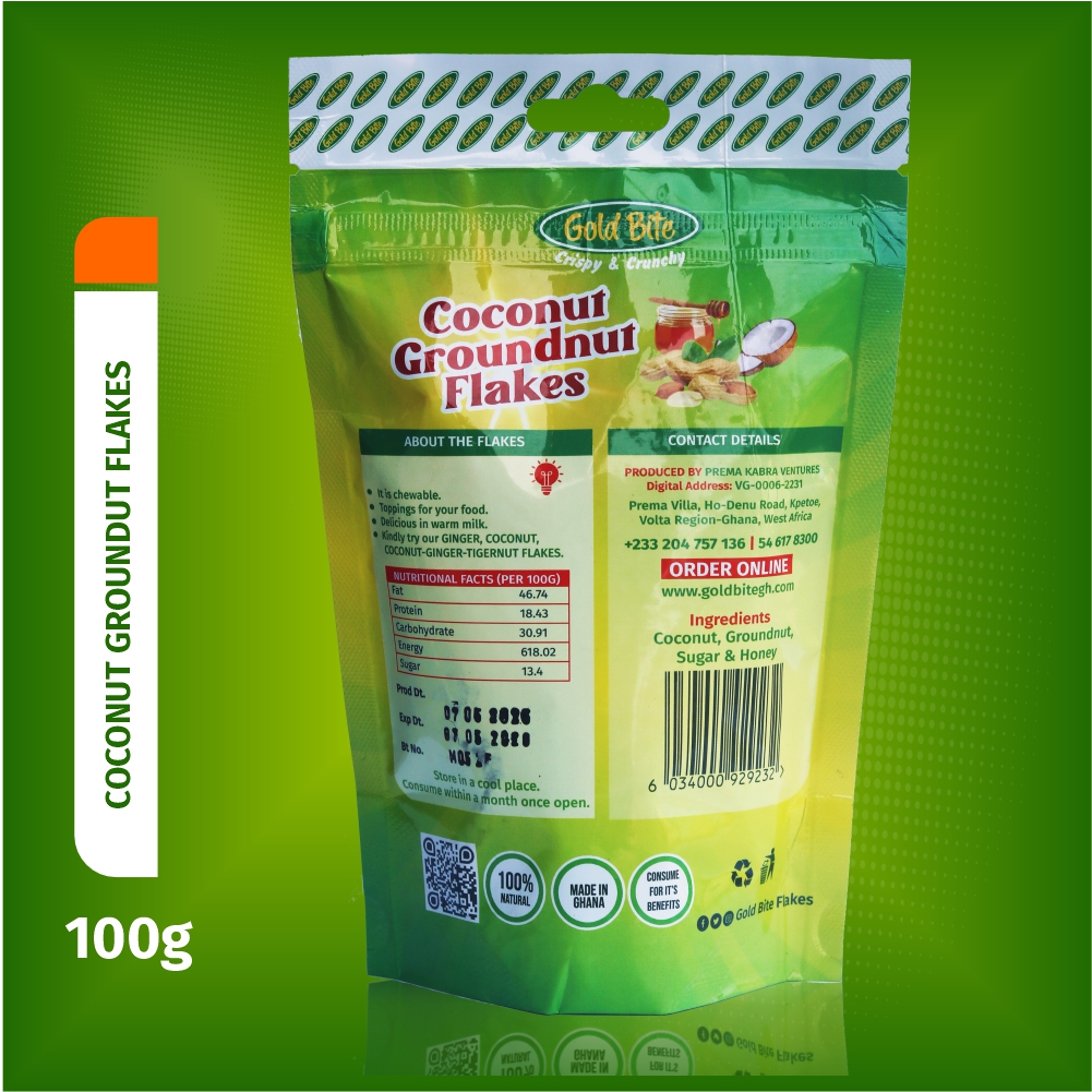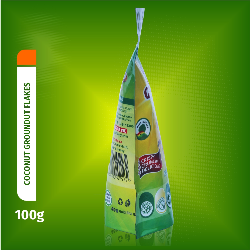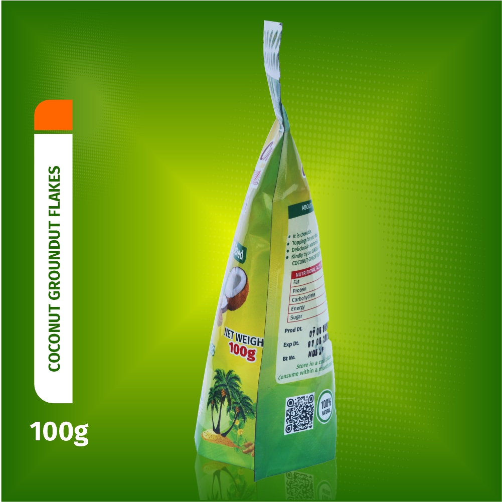 FDA approved Coconut-Groundnut Flakes are a blend of crunchy groundnuts and sweet coconut. They are not fried but baked with no added oil.