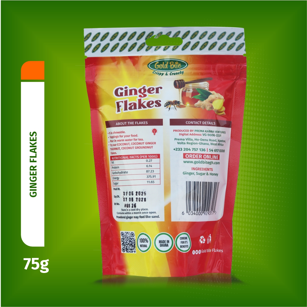 FDA approved Ginger Flakes are dried, crushed, crispy, and crunchy ginger pieces. They are not fried but baked with no added oil.